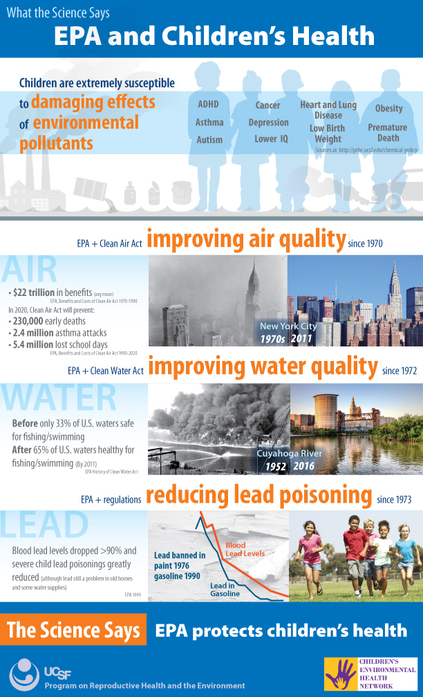 Our April 2017 legislative briefing “What the Science Says: How EPA Matters to Children’s Health,” held in partnership with the Children’s Environmental Health Network, was attended by over 90 people including Congressional staff, EPA, media and NGOs. Leading scientists presented compelling data on how environmental protections affect children’s health. We developed the infographics and social media outreach materials below to summarize the science linking environmental health and children’s health — please feel free to use and share!